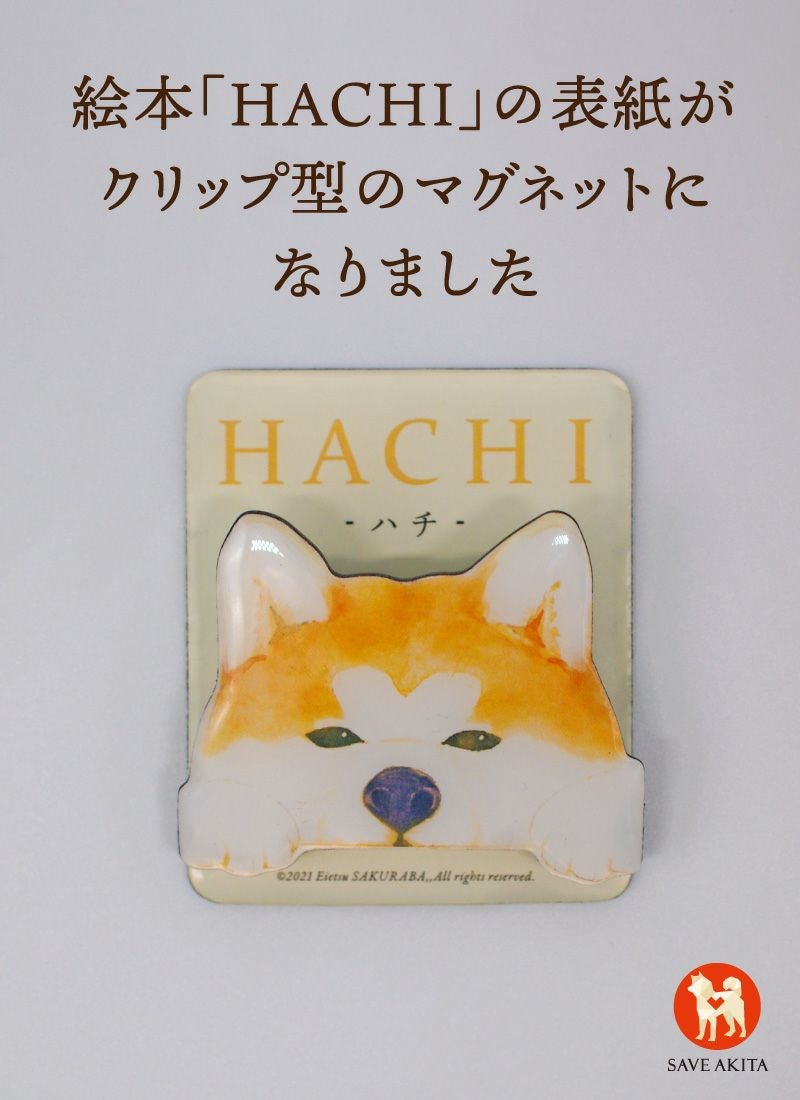 「-HACHI- クリップ型マグネット」は、絵本「HACHI ‐ハチ‐」の表紙にも使用されている、印象的なハチのイラストを使用した商品です。
